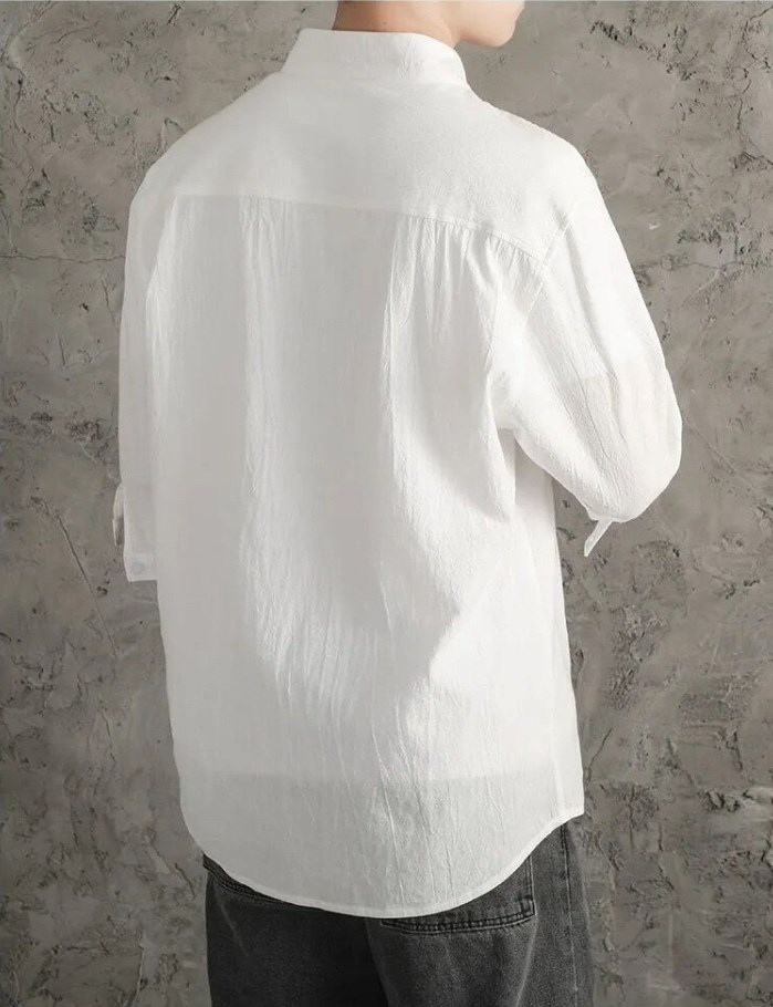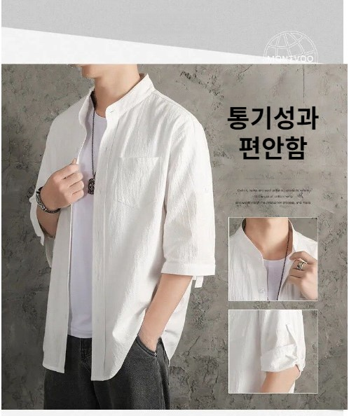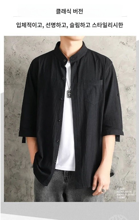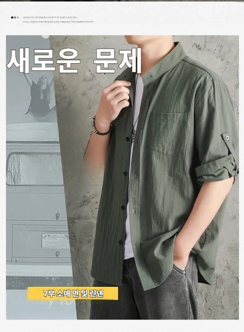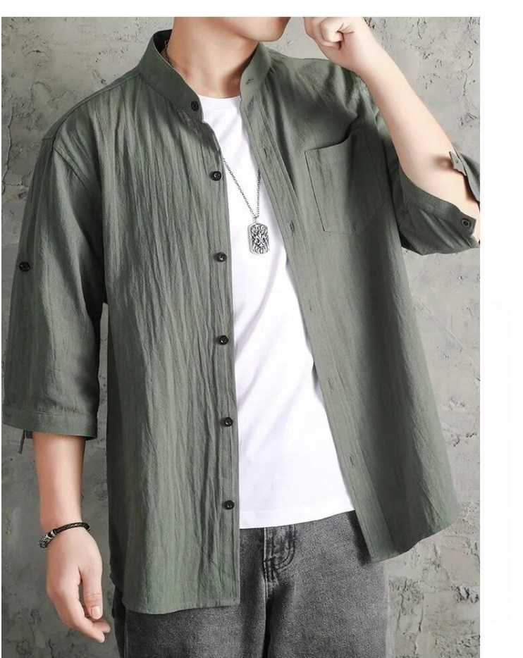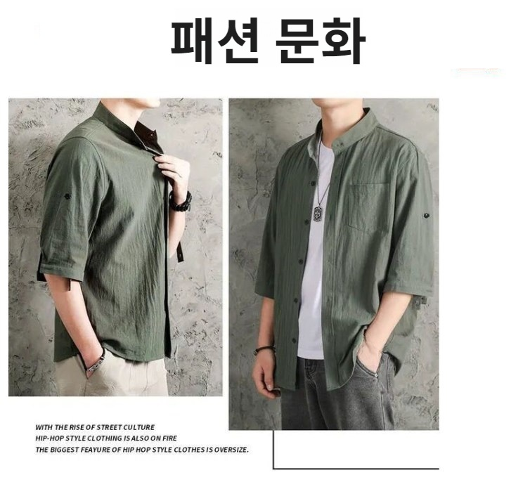 남성 캐주얼 재킷 7분 소매 셔츠 남성 여름 루즈 면 린넨 셔츠