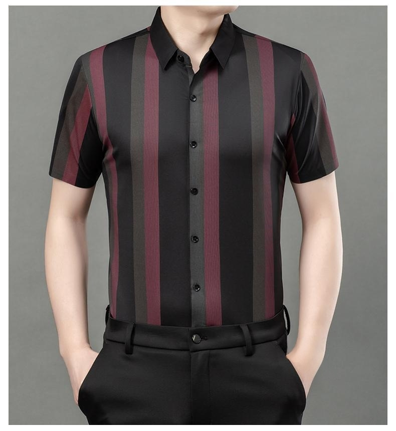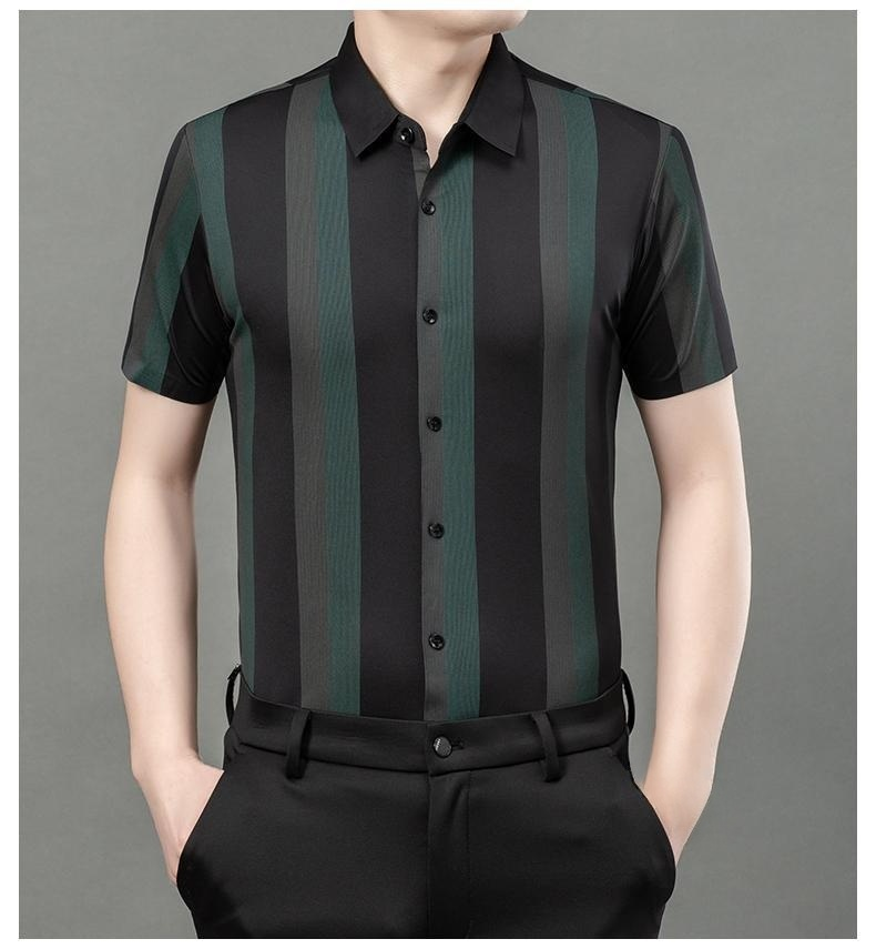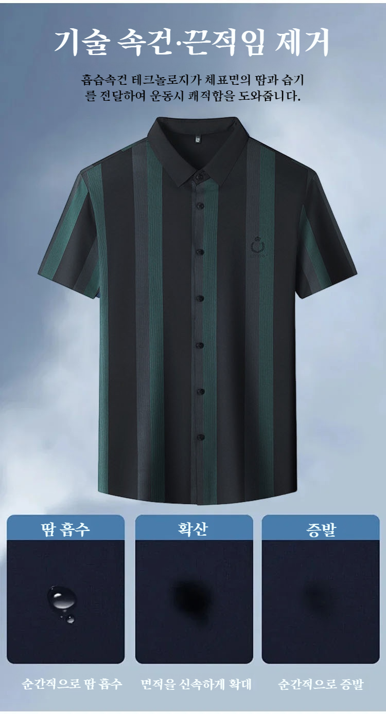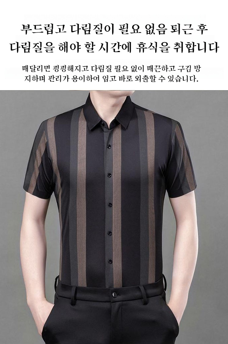 여름 날씬한 스트라이프 셔츠 아이스 쿨링 논스톱 중년 남자 반팔 상의